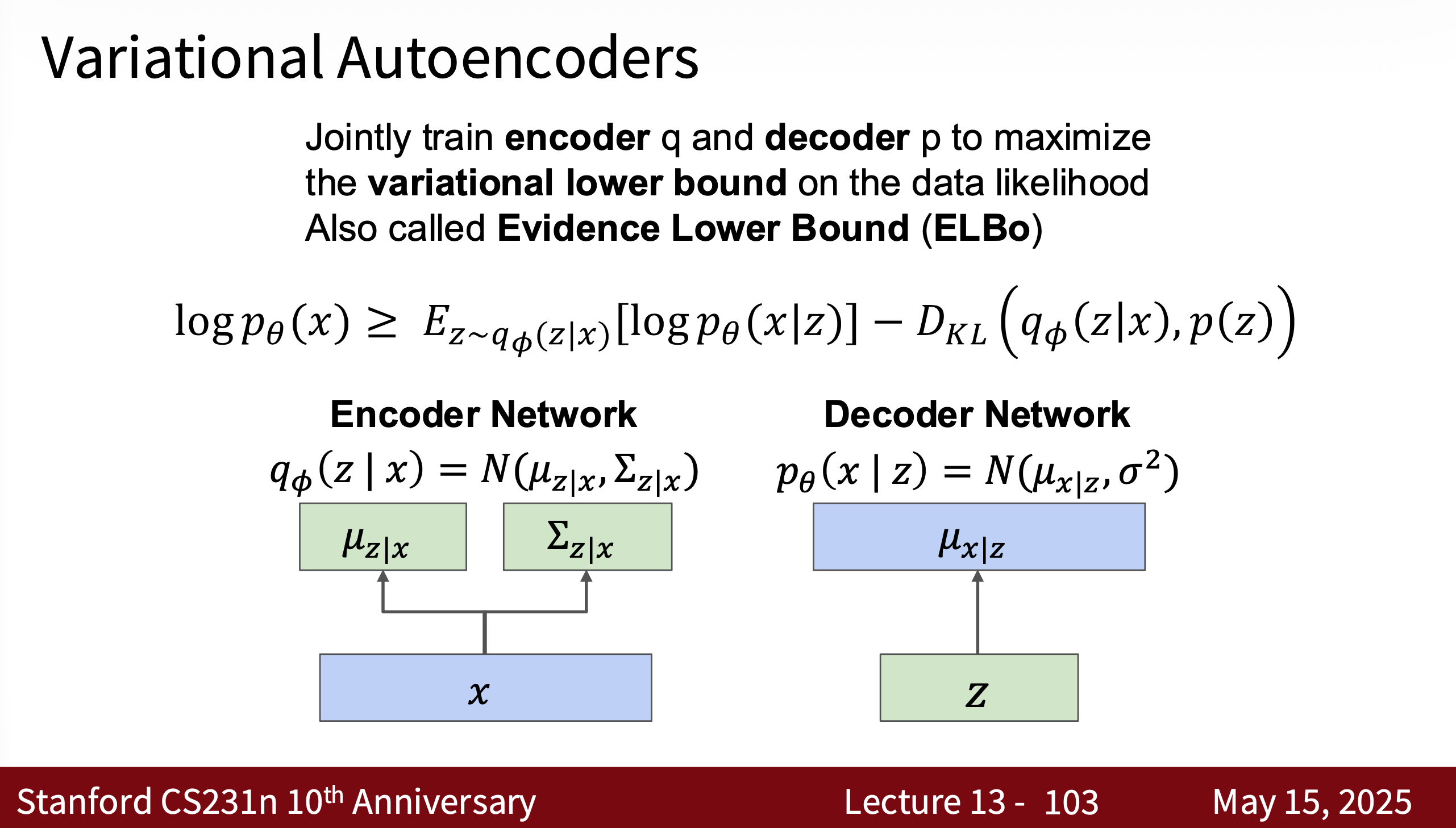 - Decoder: $p_\theta(x \mid z)$
