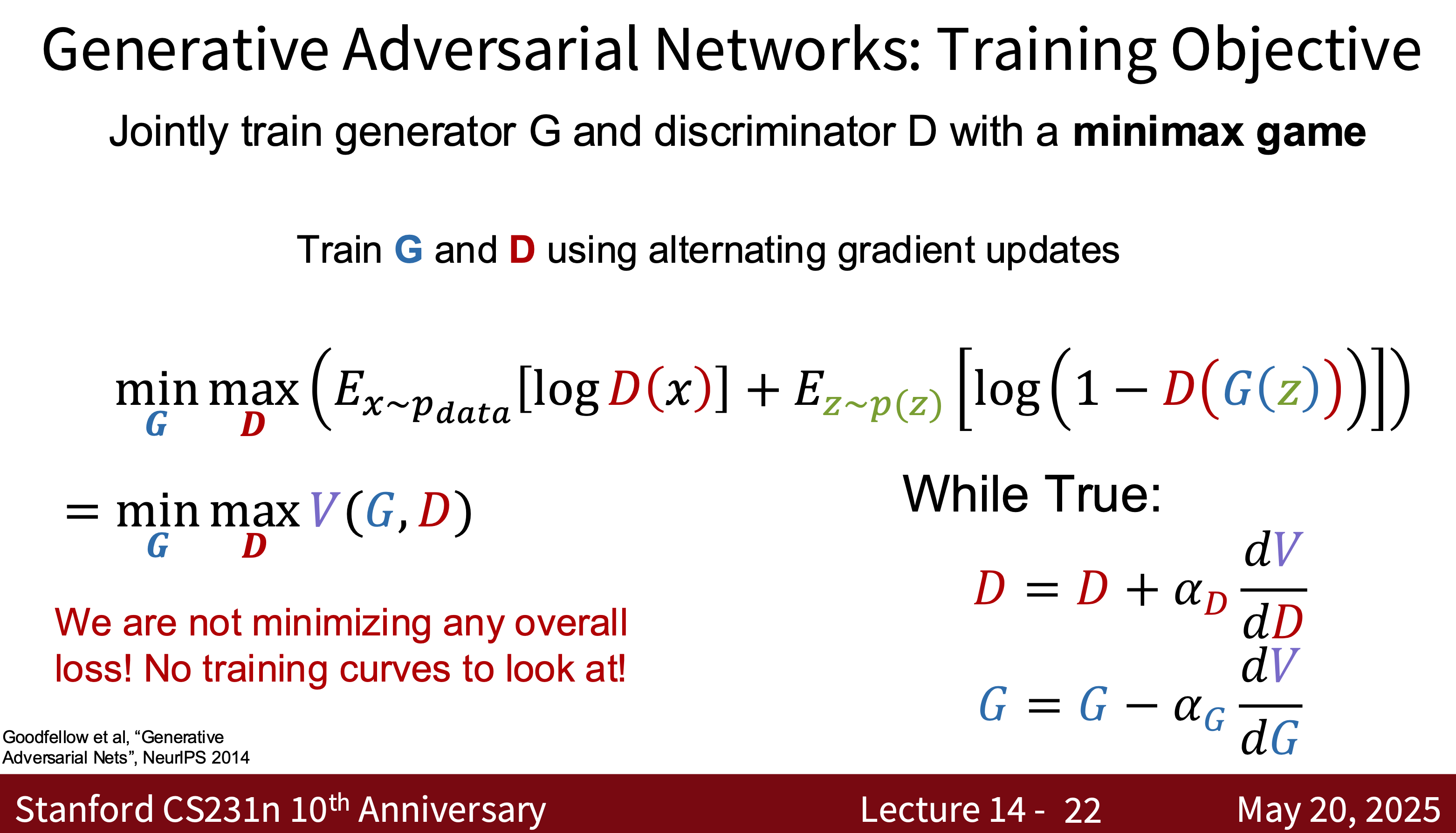 - Training Two Networks—Generator $G$ and Discriminator $D$